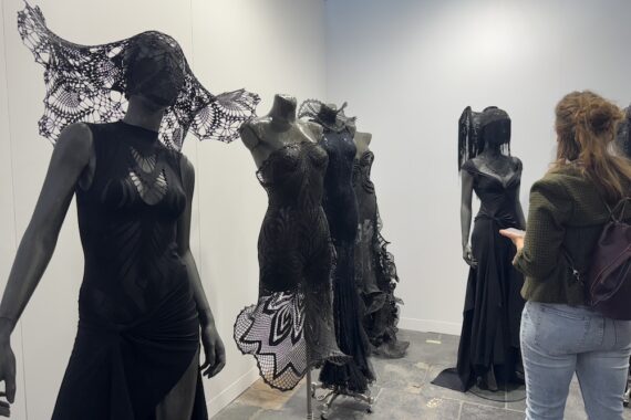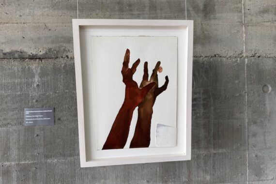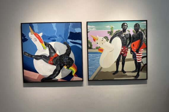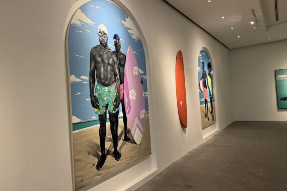 The exhibition extends beyond material assemblage. Disassembled wooden canoes, melted jerrycan sculptures, and charcoal drawings mirror the rhythms of communal life along Ghana’s coast—fragile, industrious, and improvisational. Collaboration also emerges as a theme, notably in paintings created with Clottey’s son, bridging generations through shared gestures and creating.