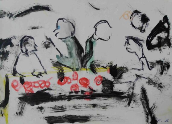 Paintings by Austrian artist Angelika Heis are definitely not dogmatic and theoretical but rather encompass the basics of life – people, trees, tables, chairs and scenes from theatres, silent movies, dancing halls, parks and events.