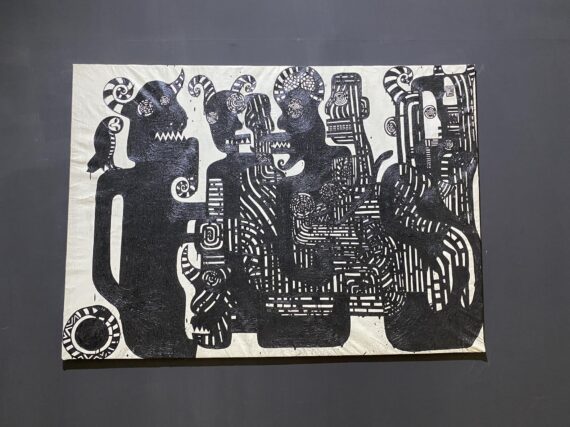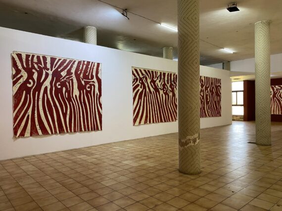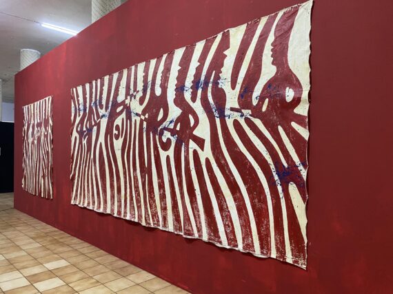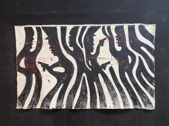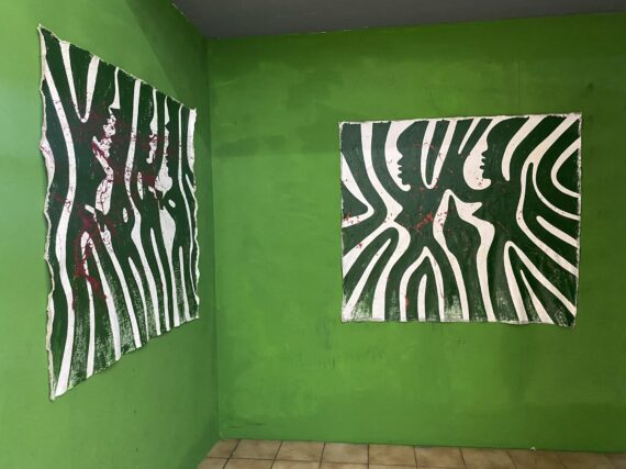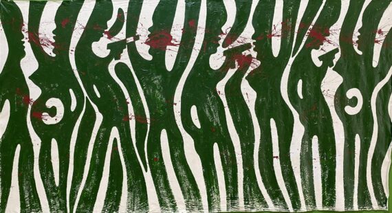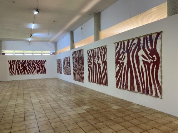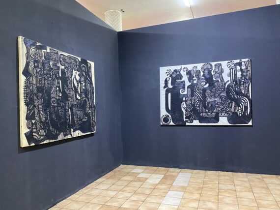 Over sixty large-scale paintings by the Ghanaian multidisciplinary artist / academic Dr. Sela Adjei, which largely draw from Frantz Fanon’s theory of catharsis and the aesthetics of violence, are currently on display at the Museum of Science and Technology in Accra.