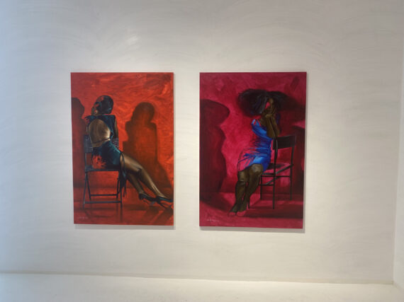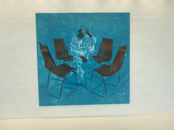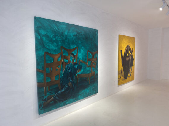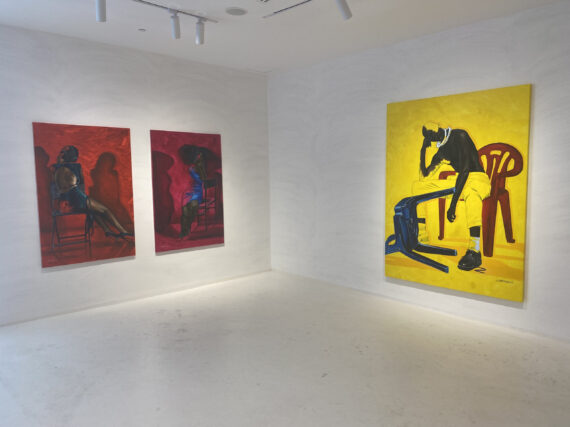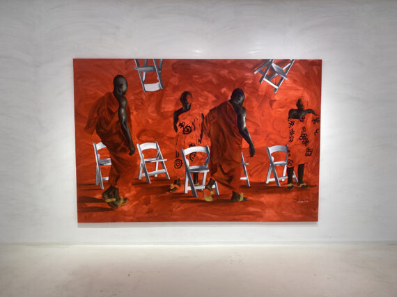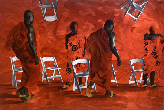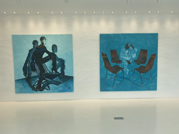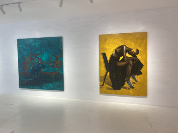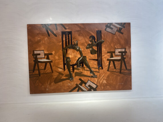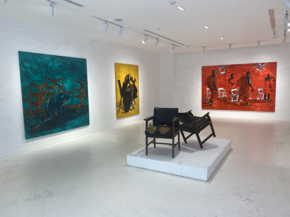 Large scale paintings by Joshua Oheneba-Takyi that tend to interrelate, interdepend and intermingle with chairs are on display at Gallery 1957 in Accra.