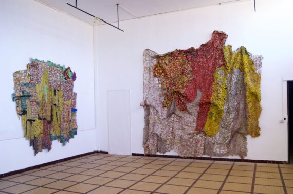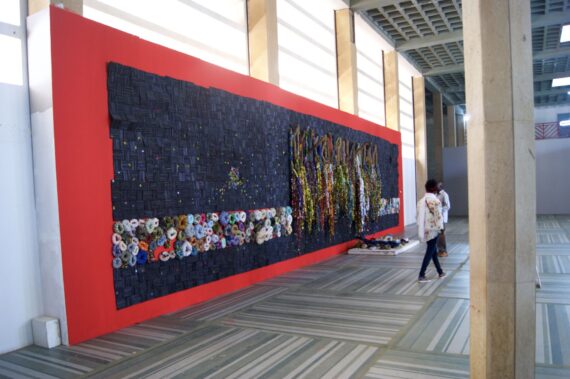 A gigantic work by the Nigerian artist Olanrewaju Tejuoso, comprise domestic waste that he turned into an award-winning piece while exploring a process of accumulation through artistic and visual heights.