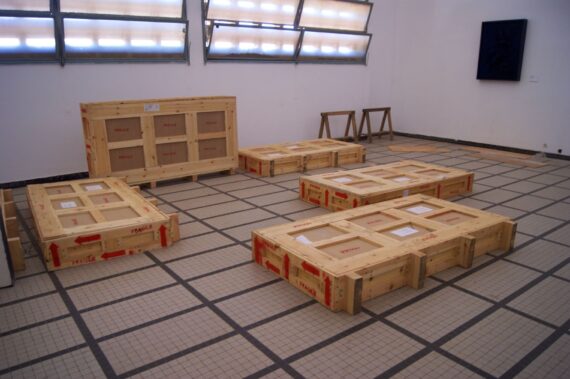 Moshekwa Langa from South Africa showcased a playful installation that reveals experiences of his life, which he maps and incorporates into his rather complex and adjustable installations. In their numeric strength, they encompass an archive of his life and works.