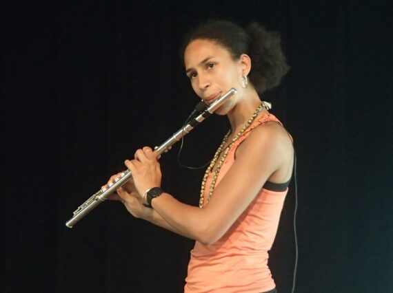 Esinam, who is also a composer, plays and performs her own music with flute, percussions, vocals as well as traditional and modern instruments – all alone on stage. She is truly “a one woman band” and is a delight to watch.