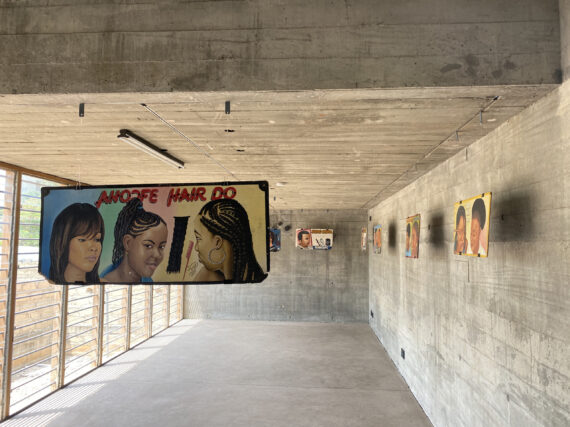 A display of movie posters and hair salon sign boards from the collection of Ghanaian academic Dr. Joseph Oduro-Frimpong that comprise fantastical images and diverse hair styles is underway at the Nubuke Foundation in Accra.