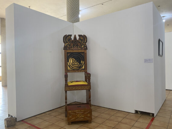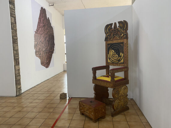 Curated by Asafo-Adjei, the exhibition is showcasing a limited number of his iconic paintings, wooden panels / doors, sculptures and for the first-time rare stamps, photographs and video clips, which represent part of his rich inventory.