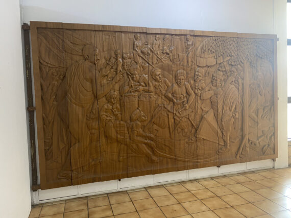 Antobam’s works include wooden reliefs on the façade of the old parliament building in Accra (1950), murals on the United Nations building in Geneva (Switzerland 1950s) and a series of woodcuts titled “The Life and Customs of the African People” (1959 – 61).