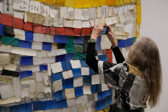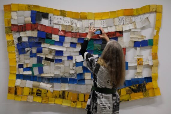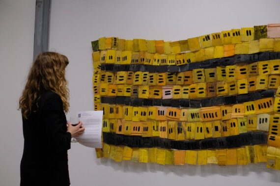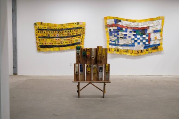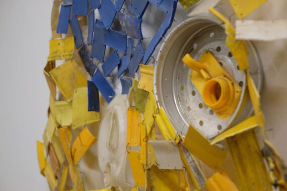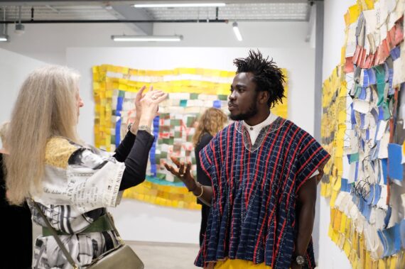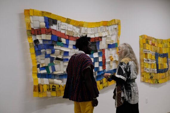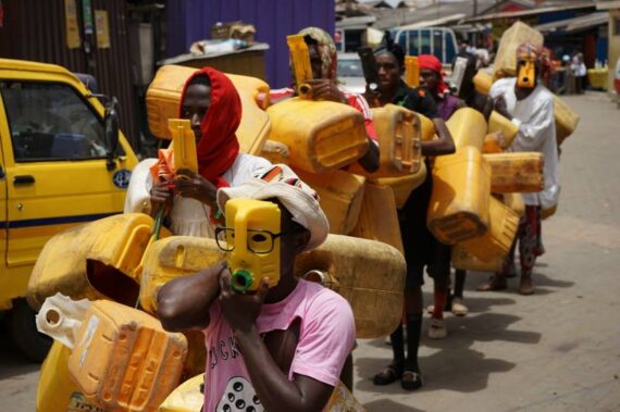 Serge Attukwei Clottey has gained international recognition via the Internet and through his travels overseas with his works focusing on the yellow jerry cans, an iconic visual symbol that have become central to his work; these yellow gallon drums used to bring water to homes of the underprivileged can be seen throughout the poorer neighbourhoods of Accra and becomes his optical metaphor for the underdevelopment of Ghana’s Capital.
