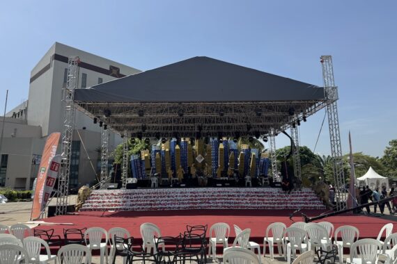 Conceived by Les Ateliers PDG under the artistic direction of renowned choreographer Georges Momboye, the stage architecture offers a bold visual narrative that mirrors the dynamism of contemporary African performance.