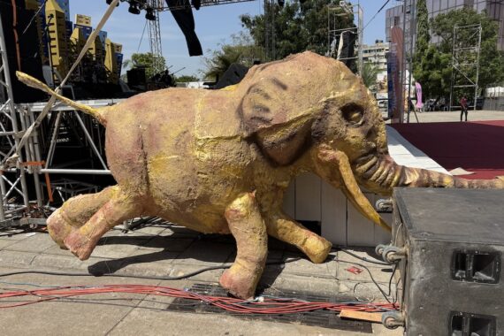 Flanking the stage are monumental elephant sculptures, a powerful nod to the national symbol of Côte d’Ivoire. Their presence adds both grandeur and cultural resonance, grounding the contemporary aesthetic in a sense of identity and heritage.