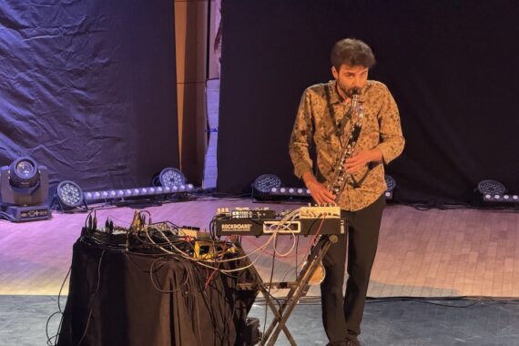 Alongside him, Eloi Calame’s mastery of the clarinet and bass clarinet adds a rich sonic counterpoint. His playing ranges from breathy, almost fragile tones to more assertive, textured passages. What distinguishes this performance, however, is the seamless integration of electronics. Loops, digital textures, and amplified breaths expand the acoustic landscape, creating a layered soundscape that feels both organic and otherworldly.