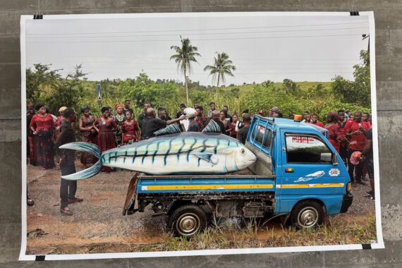 Complementing these images are the sculptural coffins of Eric Kpakpo, a master carpenter whose practice continues and expands the Ga tradition of figurative coffin-making.