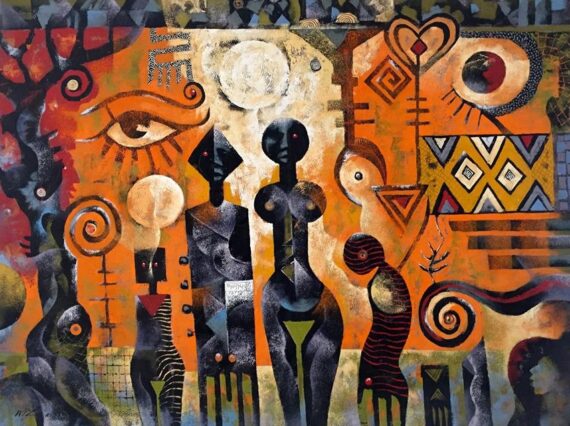 Easily one of Ghana’s best respected and acclaimed modernist painters, his paintings are influenced by rich African symbolism, out of which he creates impenetrable messages that are characterized by stimulating titles and designations.