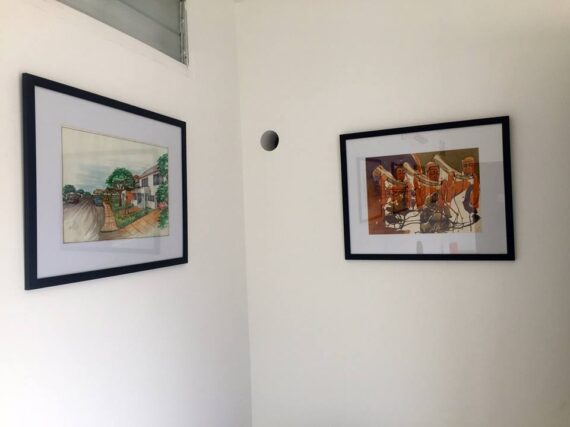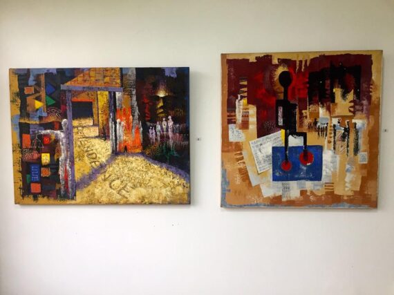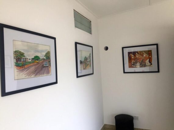 His works at the ANO Gallery from his early days as an artist reveal varied details of faces and their vocabularies in his dancing and romantic figures, market women and beer downing gatherings that largely portray practices in the local Ghanaian art scene in the 1970s.